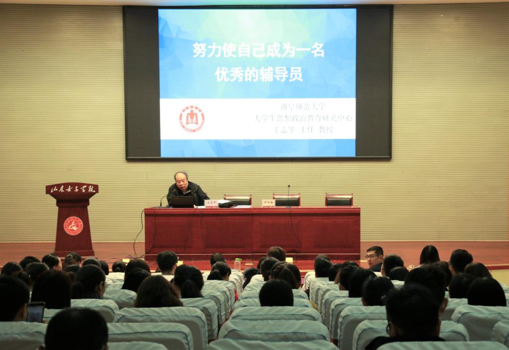 11月1日下午,学校邀请曲阜师范大学王志华教授以《努力使自己成为一名优秀的辅导员》为题作报告。全体辅导员、班主任、学生处工作人员参加了报告会。会议由学生工作处负责人主持。