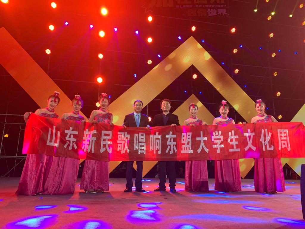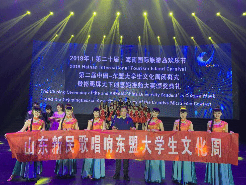 本届文化周通过中国—东盟大学生艺术展演和中国—东盟青年文旅交流体验等活动,充分展现了中国、韩国与东盟各国的民俗风情、地域特色和当代国际青年的青春风采。此次活动我校表演唱队的山东新民歌唱响东盟,得到主办方及国际友人的一致好评。11月26日晚,“第二届中国——东盟大学生文化周闭幕式暨格局屏天下创意短视频大赛”颁奖盛典在海口经济学院举行,我校表演唱队参加闭幕式演出。演出展现了山东大学生的青春活力,弘扬了山东的传统文化,吸引众多观众驻足观看。