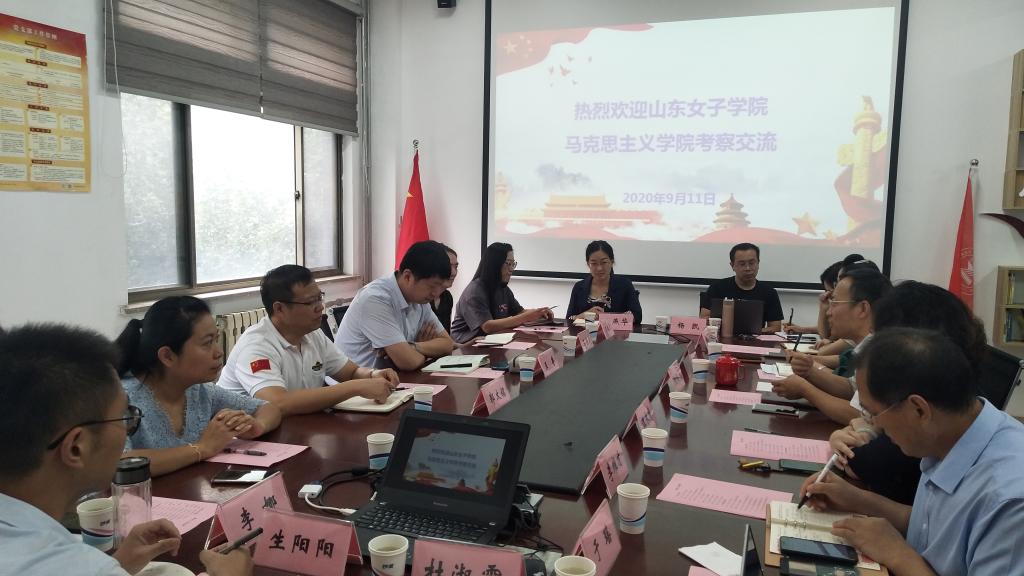 山东青年政治学院马克思主义学院院长刘丙元、直属党支部书记温永慧、副院长段微晓及各教研室主任给予了热情接待并组织座谈会。刘丙元院长介绍了山东青年政治学院马克思主义学院的发展历程和学院建设情况,段微晓副院长介绍了思政课的教学改革经验。双方重点围绕思想政治教育专业的申报和建设,思政课改革提升,青年教师培养进行了深入交流,并就可能开展合作的领域交换了意见。座谈会后,学习组参观了山青院马院的院部办公室、宣传长廊等场地。