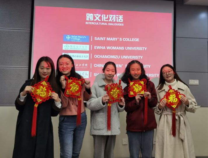10月24日上午,学校与国内外合作院校共同举办了“世界女大学生在线跨文化对话”活动,外国语学院6名师生代表与来自美国圣玛丽学院、韩国梨花女子大学、日本御茶水女子大学和中华女子学院的师生针对专业学习、国际交流与合作、共同面对人类重大问题等话题进行了深入交流。