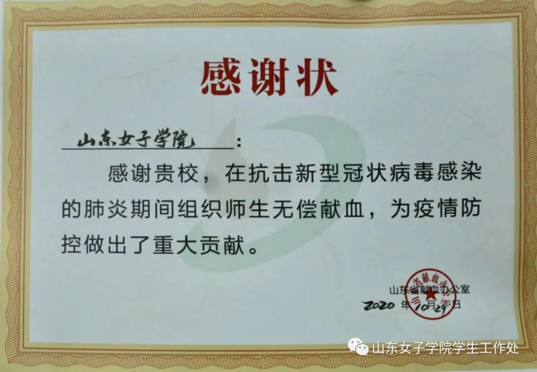 活动现场,在专业人员的指导下,参与师生严格遵守疫情期间献血规定,有序地验血、采血。参与献血的同学们纷纷表示,今年举国上下抗击新冠肺炎疫情的生动实践,彰显了“一方有难、八方支援”的中华民族传统美德和集中力量办大事的社会主义制度优势。作为新时代大学生,应该积极倡导并主动参与无偿献血活动,用实际行动展现爱国情怀和责任担当。山东省献血办公室颁发感谢状对学校组织无偿献血、为疫情防控做出重大贡献表示感谢。