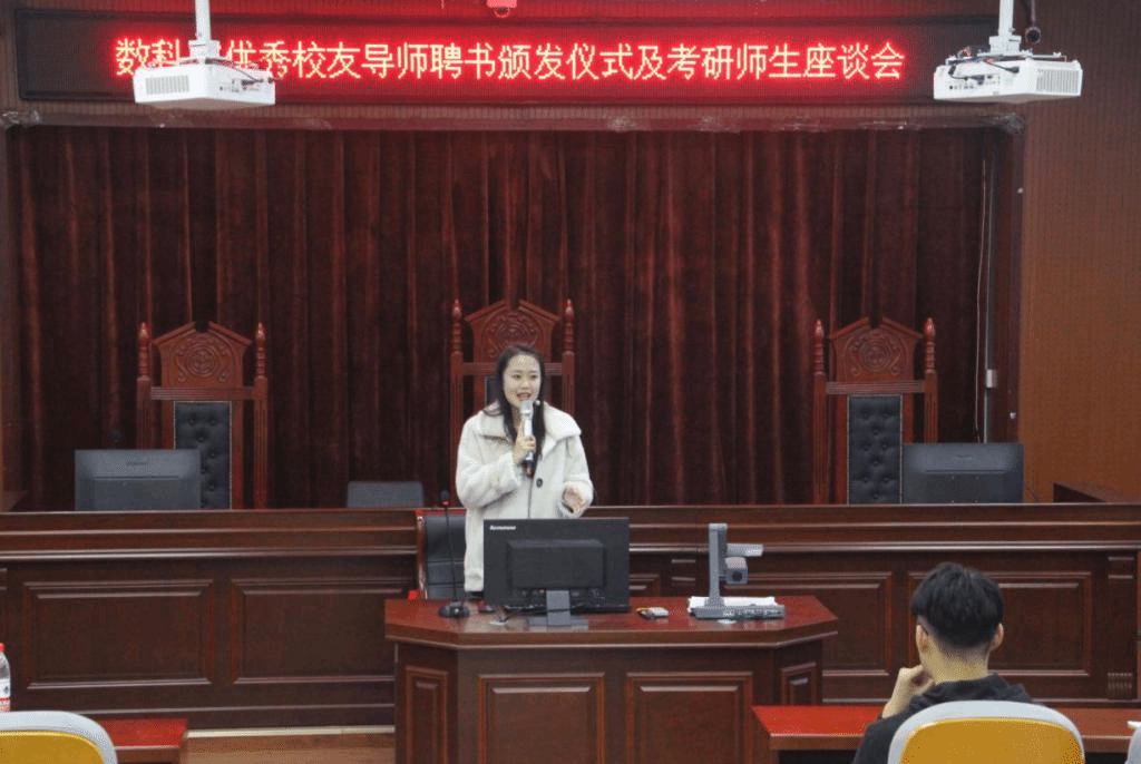 聘任仪式上,几位老师先后发言,表达了对优秀校友返校的热烈欢迎,同时对学院聘任优秀校友导师活动提出肯定,对校友导师提出了殷切希望,希望校友导师能积极发挥作用,多指导、多帮助考研学生解决实际问题,鼓励考研学生与校友导师多沟通、多交流、多学习。随后,为来自北京航空航天大学在读博士研究生车统统等7位优秀校友颁发校友导师聘书。校友学业导师代表车统统代表新聘任的校友导师发言,回忆了自己在女院的学习生活历程,用自己从本科到博士的学习历程,鼓励考研同学树立远大目标,发扬女院精神,通过不断拼搏赢得未来。聘任仪式结束后,数据科学与计算机学院进行考研师生座谈会,来自北京航空航天大学、山东师范大学和齐鲁工业大学校友代表,围绕个人考研经历和备考经验依次分享发言,并就如何择校选专业、如何准备研究生各阶段考试、如何安排学习时间等几方面,给准备考研的同学们提出很多很好的建议,要在心理、身体、学习等各个方面做好充分准备。分享交流后,在场的同学们向考研成功的学长学姐请教自己备考的困惑和遇到的问题,老师和学长学姐结合实际进行了详细解答、交流。