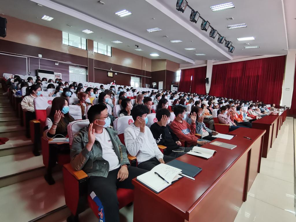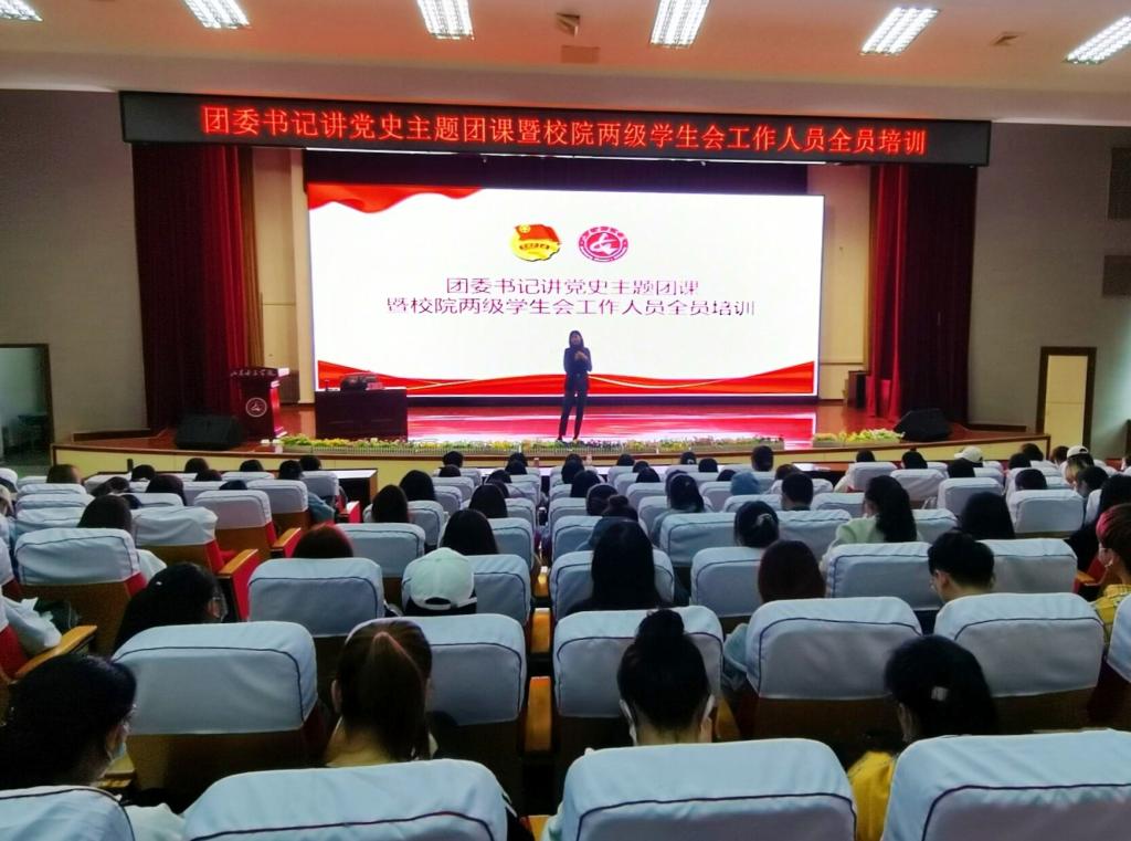 4月22日下午,学校举行团委书记讲党史主题团课暨校院两级学生会工作人员全员培训。学校团委负责同志、学生会秘书长以及校院两级学生会全体工作人员300余人参加。