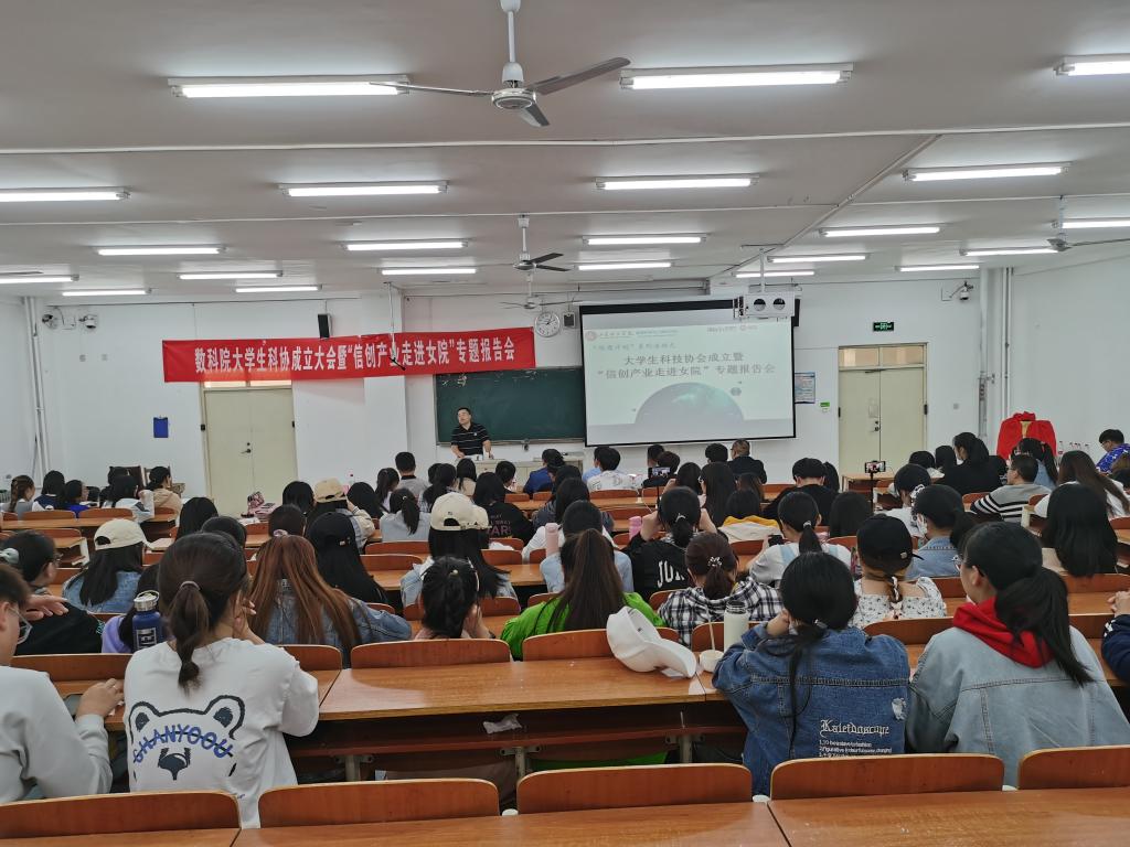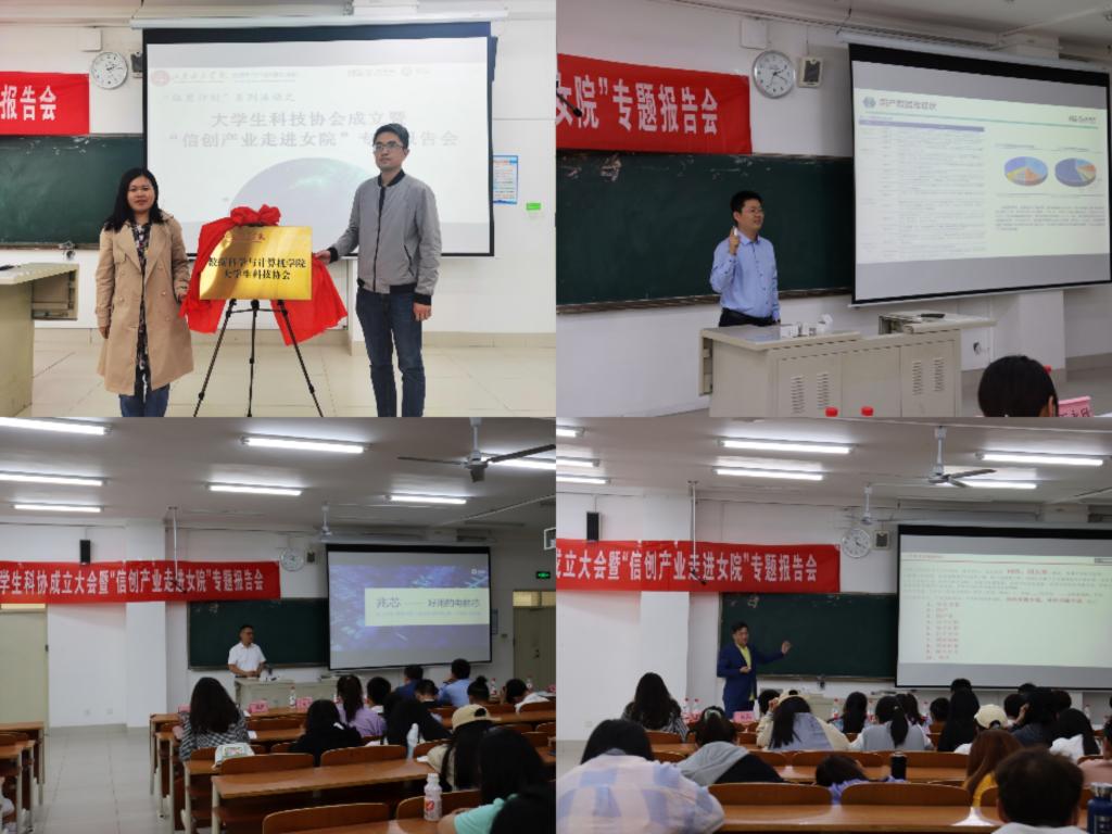 学院负责人指出,作为学校唯一的理工科学院,成立大学生科技协会是大力开展学生科技创新活动的一件大事,标志着学院的科技创新工作由教师主导逐步推向学生群体自觉。为更好地开展工作,他提出四点建议:一是促进学生养成正确的世界观、人生观、价值观,肩负起科技报国的使命;二是进一步加强科普教育,充分利用暑期“三下乡”社会实践等开展科技下乡、科技支农活动,助力乡村振兴战略实施;三是希望能不断加强对外合作,加强学生科协与教师科协之间、与外校大学生科协之间交流,拓宽青年学子的学术视野,营造浓厚的学术、科技创新氛围;四是希望科协同学能加强自身建设,主动培投身各项学科竞赛,不断提高科技创新意识与科研实践能力。会上,科研处和团委相关负责老师为大学生科协揭牌,瀚高数据库执行总裁高通、兆芯业务拓展高级经理蒋绳奋、同方股份资深信创总监任腾龙三位专家分别围绕信创背景国产数据库发展之路、国产CPU的发展历程等,开展信息技术产业专题报告,让同学们了解了当前信息技术产业的发展现状、发展趋势和发展特点等。