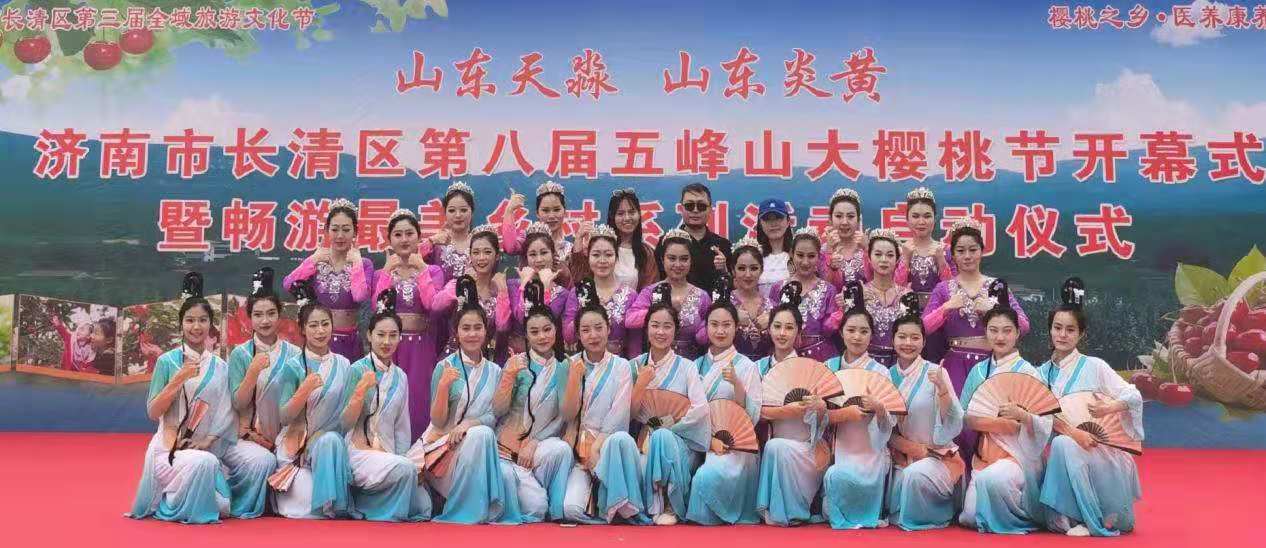 5月15日上午,音乐学院43名师生参加济南市长清区“山东天淼”“山东炎黄”第八届五峰山大樱桃节开幕式文艺演出活动。