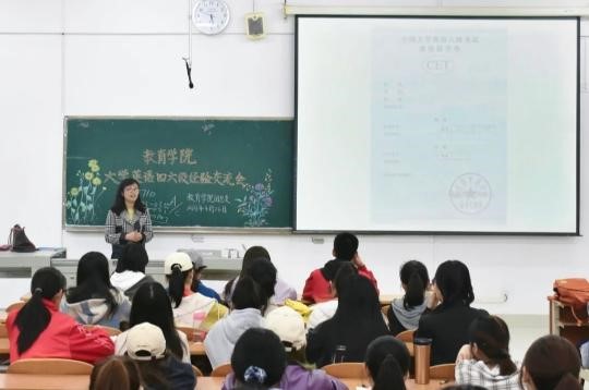 大学英语四六级讲座提升英语学习热情。为加强学风建设,迎接全国大学生英语四六级考试,教育学院于4月26日晚18:00在博文楼101举办了大学英语四六级讲座。杨玉珊和宫翠萍两位老师向大家强调了大学英语四六级考试的重要性,并讲解了考试报名的具体流程和注意事项,同时向学生们系统地介绍了四六级考试的备考方法。刘梦珂和司西翠两位四六级高分学生结合自身考试经历,在考试心态和分数分布等方面进行了重点分享。此次讲座充分调动了同学们迎战四六级考试的积极性,极大地增强了同学们应考的信心。