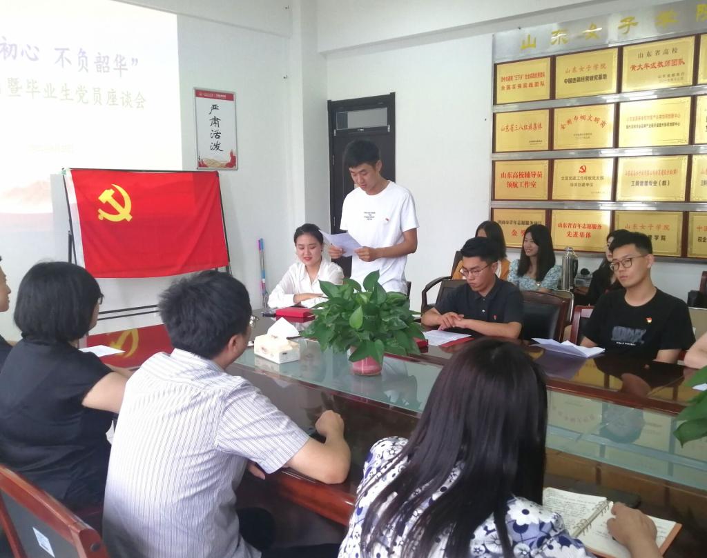 为切实加强毕业生党员教育管理,为深入学习贯彻习近平新时代中国特色社会主义思想,自觉提高政治站位,时刻牢记初心使命,铭记党员身份,工商管理学院学生党支部于6月25日举办“秉承初心 不负韶华”主题党日暨毕业生党员座谈会。党总支书记田莉春、辅导员王鹏超和于力鹏老师以及21届全体毕业生党员参加此次会议。本次会议由工商管理学院学生党支部书记孔圆圆主持。