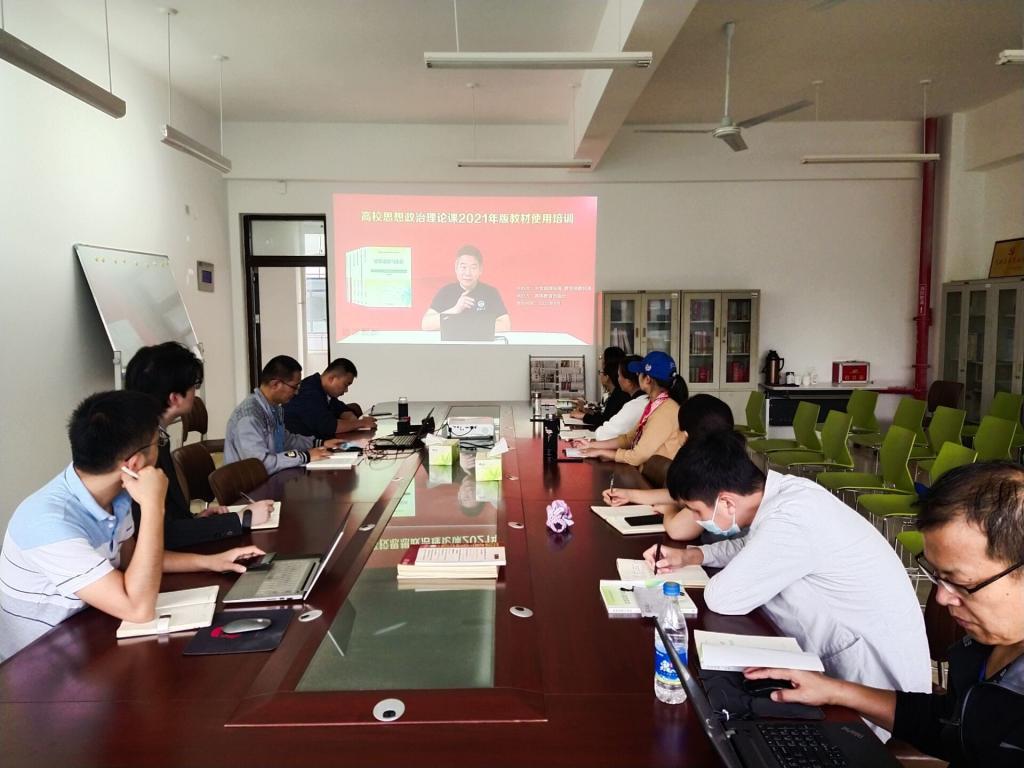 近日,马克思主义学院组织全体思政课教师分批参加由中宣部理论局、教育部教材局组织开展的高校思想政治理论课2021年版教材使用培训。