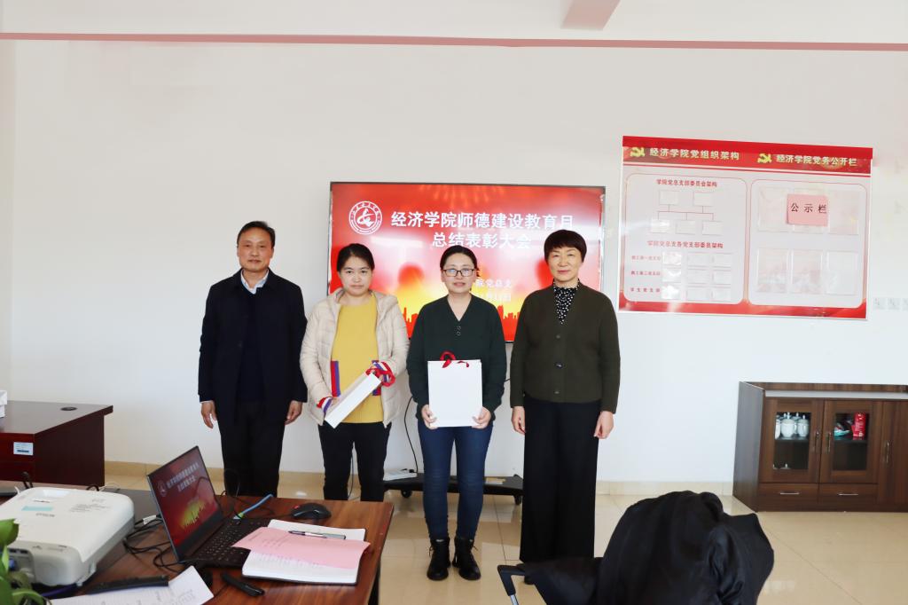 11月11日下午,经济学院首届“师德建设教育月”总结表彰大会在求真楼202举行。学校党委委员、副院长侯素美、经济学院班子成员及全体教师参加会议。