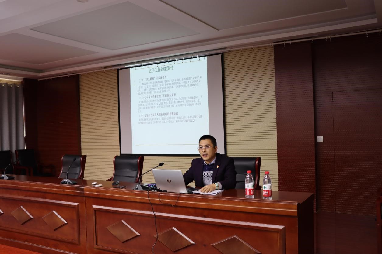 党委、院长办公室的孟涛老师结合自身多年从事文字工作的实践,从工作的职责、常用文稿的格式要求、多种文体的写作特点等方面进行了讲述,分享了自己总结的文字工作经验和技巧,帮助工作人员解答了在公文写作中遇到的难题。