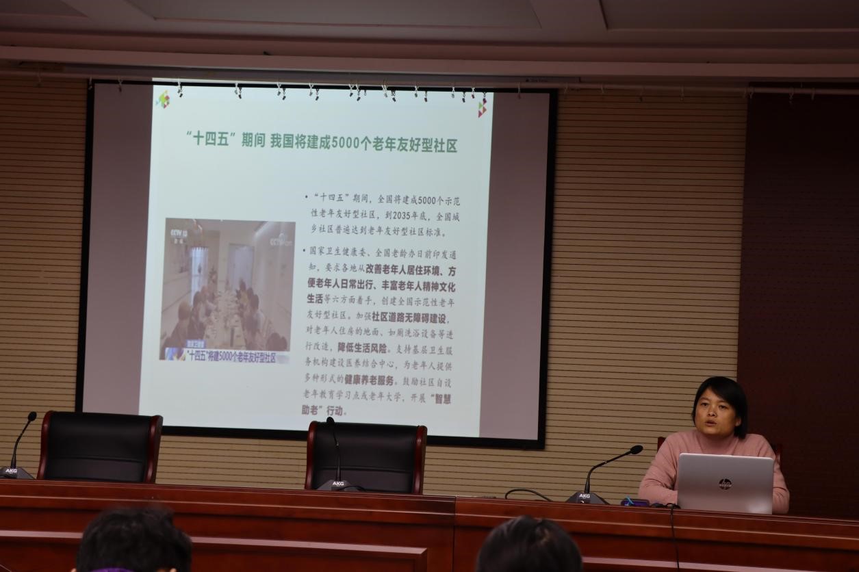 经济学院的孙颖老师为社区工作人员带来了以“共建出彩纬北,共享幸福家园”为主题的培训,她从“我们需要什么样的出彩社区”入手,指出全龄友好社区已成为未来社区发展的重要方向;在“如何打造出彩社区”中,提出社区服务、管理及活动方面的“555”原则,并针对社区工作重点,辅以国内典型案例,向工作人员阐释打造出彩社区过程中可以借鉴的具体做法。最后,进一步解释了社区工作中的叠加思维、借势思维以及多米诺思维等“三种思维”和五个意识,建议社区可以加强与高校间的沟通合作,进一步推动社区工作的落实。
