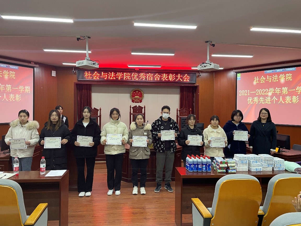 为增强学生对文明宿舍建设的积极性,进一步推进宿舍管理工作,12月9日下午,社会与法学院举办了本学期优秀宿舍表彰会。学校学生公寓管理中心负责人、学院领导和辅导员参加会议。