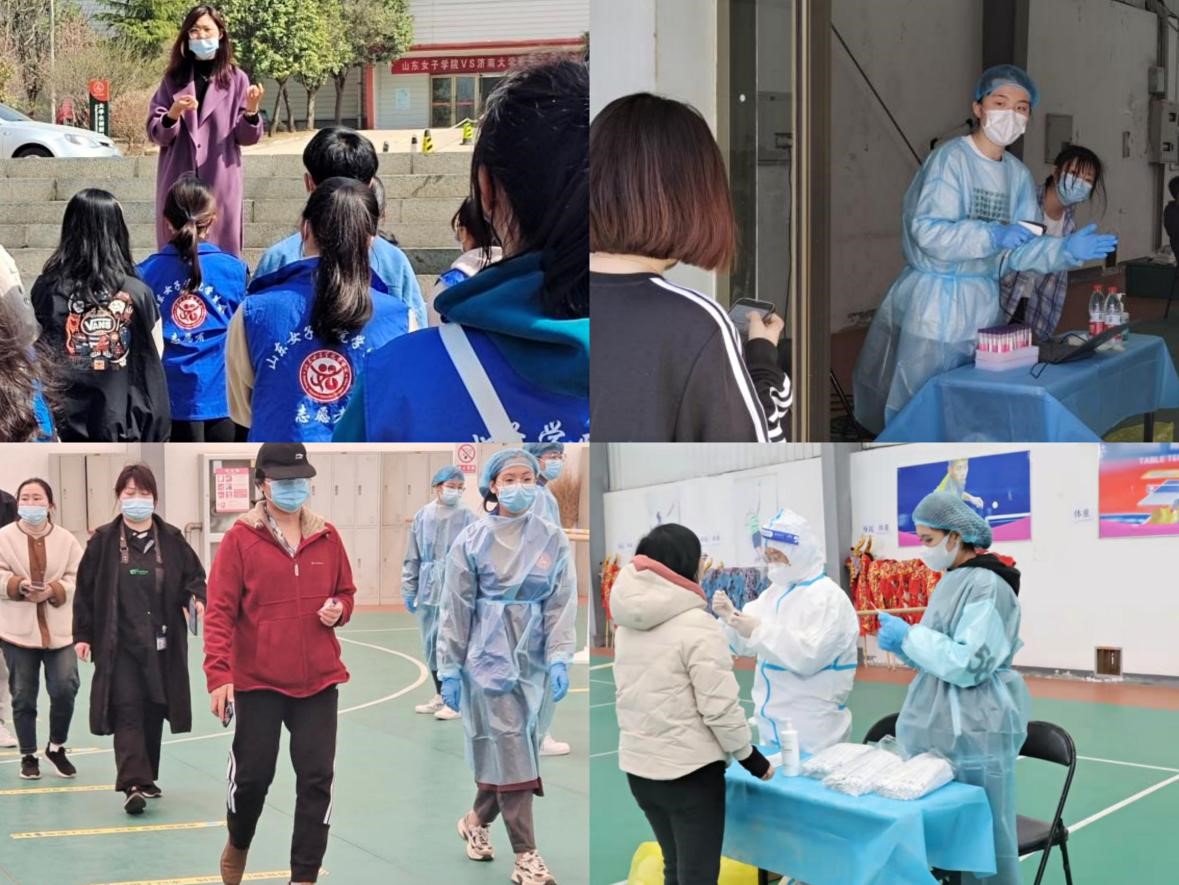 3月14日,女院“团小青”志愿服务队在学校综合训练馆核酸检测点上岗。各级学生干部积极响应号召冲锋在前,率先成为女院“团小青”第一批志愿者,他们用爱心、用行动,书写着一份责任担当,彰显着一份家国情怀。一个个“蓝马甲”按照“快、准、严、实、细”的工作要求,各司其职,迅速投入工作中。场馆外的流动岗志愿者协助师生进行检测前的信息登记,耐心解答着师生提出的各种问题;负责维持秩序的志愿者们提醒全体师生佩戴口罩,保持“一米线”安全距离,保证师生安全有序排队;核酸检测场馆内的志愿者则与医护人员配合默契,在岗期间全程穿戴防护服并佩戴口罩,确保整个检测过程秩序井然,高效顺畅。