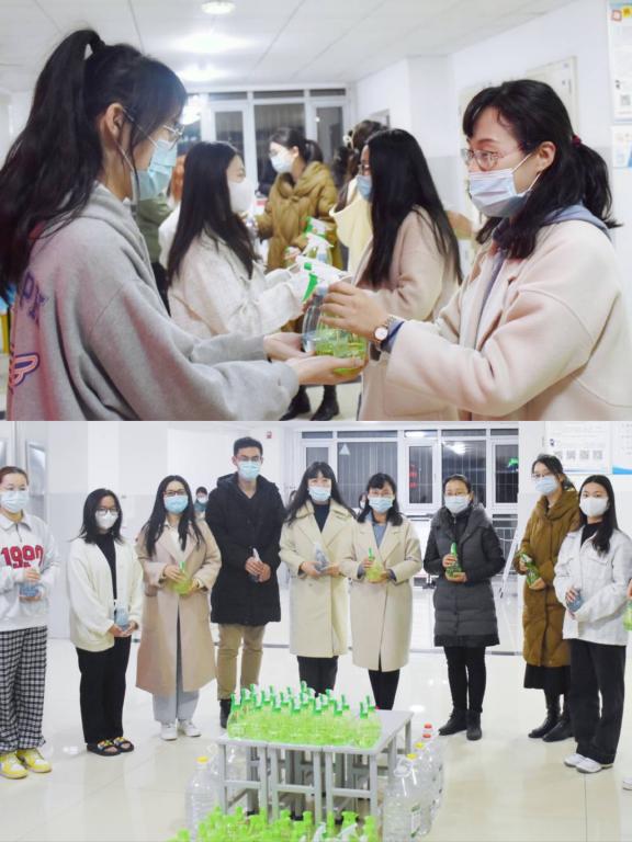 在发放消杀物资的过程中,老师们认真询问了学生的各项需求,鼓励学生积极调整心态。本次活动不仅提高了教院学生对宿舍消杀的重视,而且展现了学院对广大学生的关心爱护和共战疫情的信心。