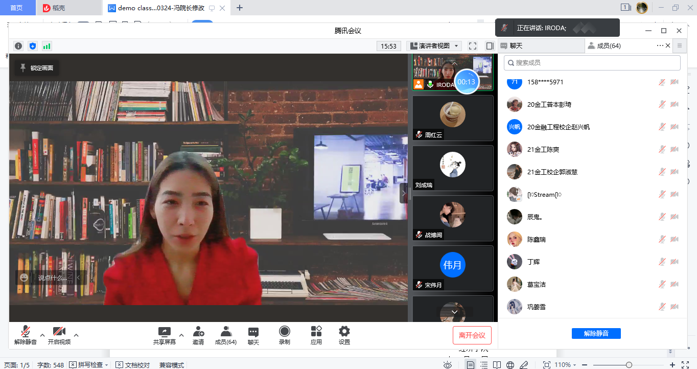 最后,经济学院国际交流项目负责人周红云老师对课程进行了总结,组织学生发表课堂感悟。同学们普遍反应,通过本次活动,体验了一种新颖的课堂授课模式,开阔了眼界,锻炼了自己的英文沟通能力。