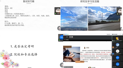 学姐学长“传帮带”,汇聚“云”端传经验。因疫情防控要求,会计学院充分发挥校内外资源优势,科学谋划,周密安排,邀请历届毕业生结合切身复试经验、备战技巧、研究生生活等开展有效的帮扶活动,旨在为考研学子带来精准指导,提升学生备考的决心和信心。