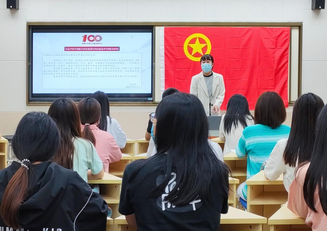 宋天娇老师带领在场团学骨干学习了《习近平给中国航天科技集团空间站建造青年团队的回信》。宋老师指出,在五四青年节到来之际,习近平总书记向航天战线全体青年致以节日的祝贺,并向他们提出殷切期望,这不仅是给航天青年的回信,更是对全体青年的殷切期盼。新一代青年一定要铭记习近平总书记的嘱托和期盼,继承光荣传统,勇于创新突破,将自身理想与国家发展相融合,不负青春,牢记使命,在逐梦新时代的征途上发出青春的夺目光彩。