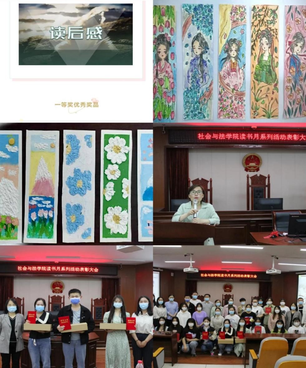 疫情难阻书香,阅读润泽心田,为迎接第27个世界读书日的到来,学院面向全院学生开展“开卷有益,书香社法”读书月系列活动,采用“读”“写”“讲”“做”四种形式,分别开展了以经典滋养心灵,以视频留住感动——“邂逅经典”推荐书籍视频大赛;沟通无阻隔,阅读无止境——“云朵上的沙龙”读后感征集大赛;以阅读提升气质,武装头脑——“我是借阅王”个人赛和团队赛;方寸世界蕴书情,书签映春情——“春·签”书签制作大赛。博观而约取,厚积而薄发,在读书中陶冶的是情操,收获的是成长。本次社会与法学院“开卷有益,书香社法”读书月系列活动,丰富了师生精神文化生活,营造了建设优良舍风学风,践行“坤德含弘,至善尚美”的校训的氛围,引导社法青年学子提升阅读兴趣、养成阅读习惯、提高阅读能力,养浩然之气,塑高尚人格,不断提高人文素养和精神境界。