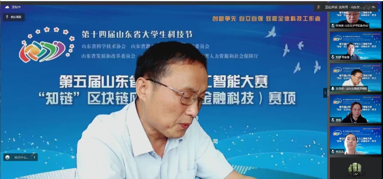 5月28日,第十四届山东省大学生科技节暨第五届山东省大学生人工智能大赛“知链”区块链应用创新(金融科技)赛项总决赛成功举行。本次比赛由山东省人工智能学会承办,山东女子学院作为比赛唯一协办单位全程参与本次比赛的各项组织工作。学校教务处副处长李高波、经济学院院长沈传河、副院长冯亮出席总决赛开幕式,部分专业教师和学生团队参加了总决赛。