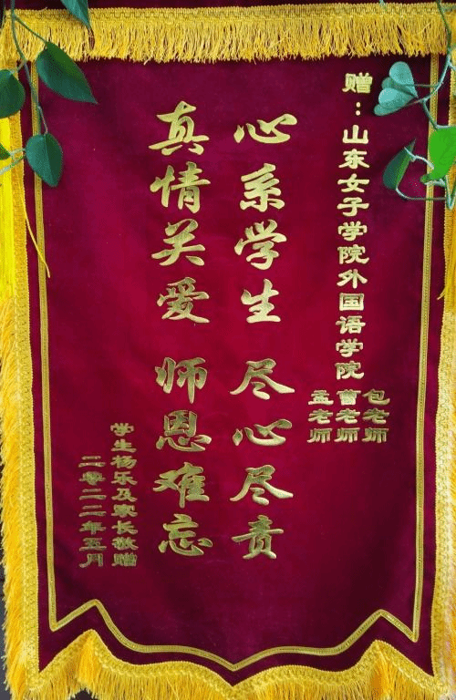 一面锦旗,一封感谢信,是鼓励更是鞭策,外国语学院辅导员队伍将继续以成为学生的人生导师和知心朋友为目标,心系学生,真情关爱,尽职尽责,为学生的健康成长保驾护航。
