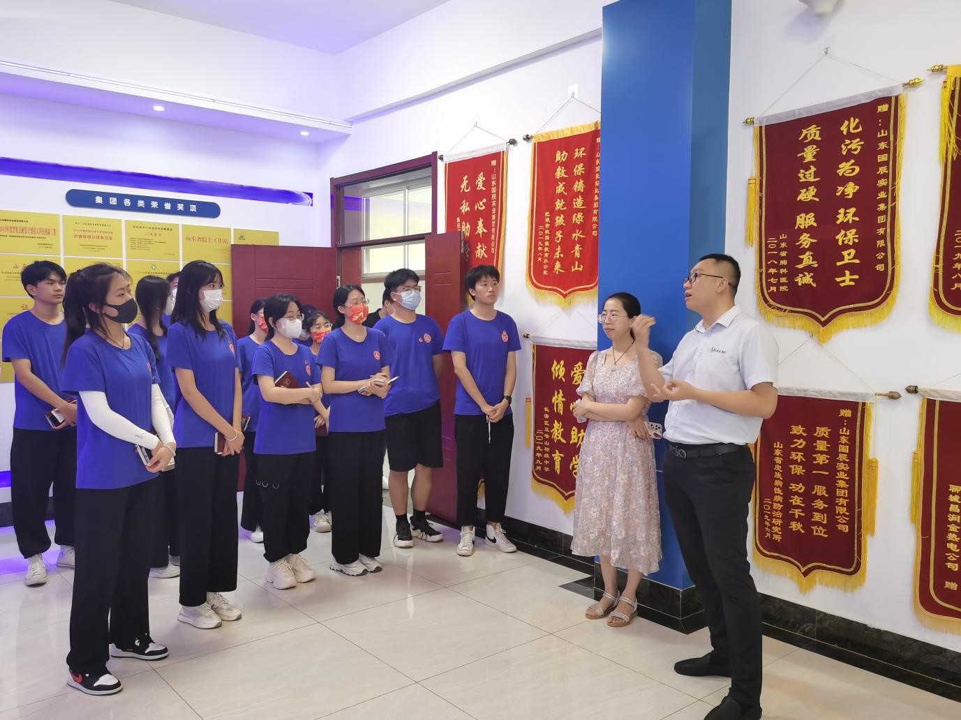 近年来,长清区五峰山街道依托压力容器产业集聚区成立非公企业党组织产业链党建联盟形成“发展共同体”,为区域产业发展注入“红色动能”。实践团的青年学子走访山东鲁润热能科技有限公司和山东国辰实业集团,通过与企业家面对面交流、现场倾听“全国向上向善好青年”讲团课等,考察当地特色产业发展情况,了解企业“党建引领人才培养”新模式。走访调研后,青年学生对基层党建工作有了更加深刻的认识,只有把基层党组织建设得坚强有力,才能进一步推动企业科技创新、引领产业技术革新。作为计算机类专业的大学生,更要坚定跟党走的信心,锤炼专业本领,努力投身党和人民需要的事业中。