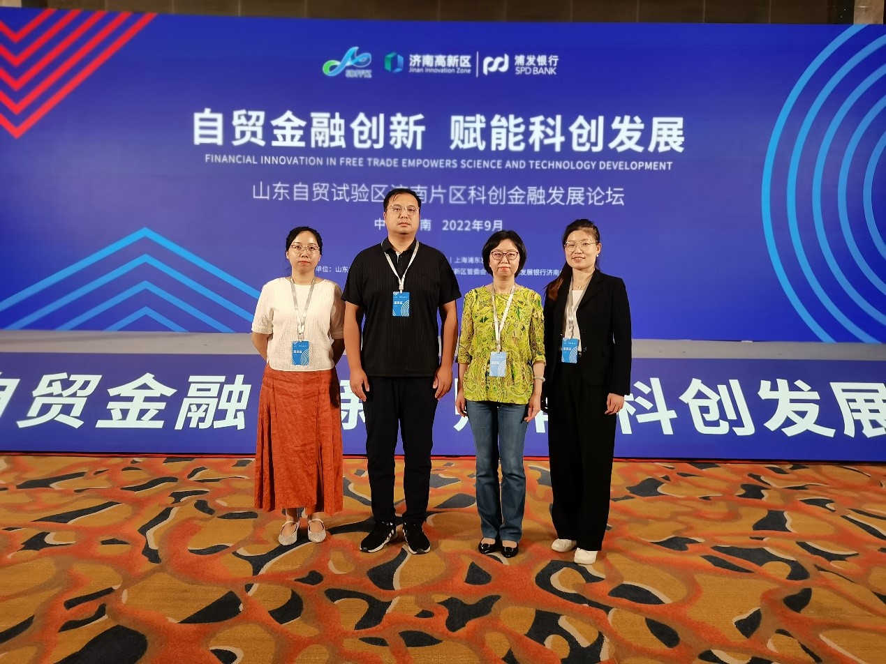 9月29日,经济学院科创金融团队参加了山东自贸试验区济南片区科创金融发展论坛。本次论坛由济南市人民政府和上海浦东发展银行指导,山东自贸试验区济南片区管委会、济南高新区管委会和浦东发展银行济南分行联合主办,以“自贸金融创新赋能科创发展”为主题,旨在探索促进金融服务科创发展的新途径新措施新模式,提升金融服务产业转型升级能力,营造自贸试验区济南片区良好金融创新生态环境,推动开放型经济高质量发展。