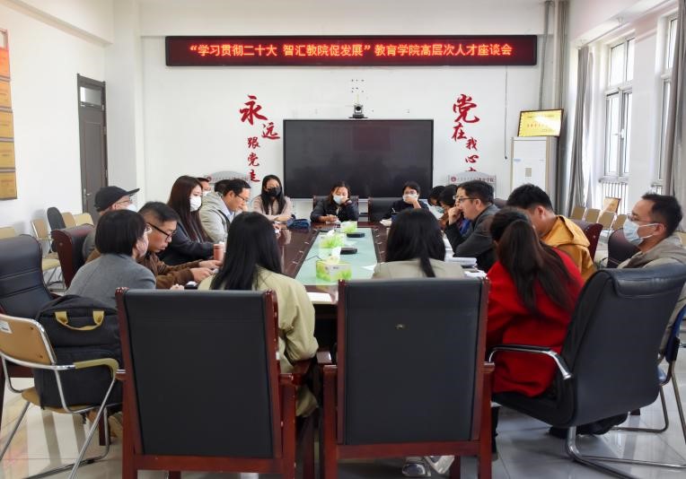 10月20日,教育学院举行“学习贯彻二十大,智汇教院促发展”教育学院高层次人才座谈会。学院党委委员、学院2018年以来入职的18位高层次人才教师参加会议,共话学院发展和个人成长。座谈会由学院党委书记崔江宁主持。