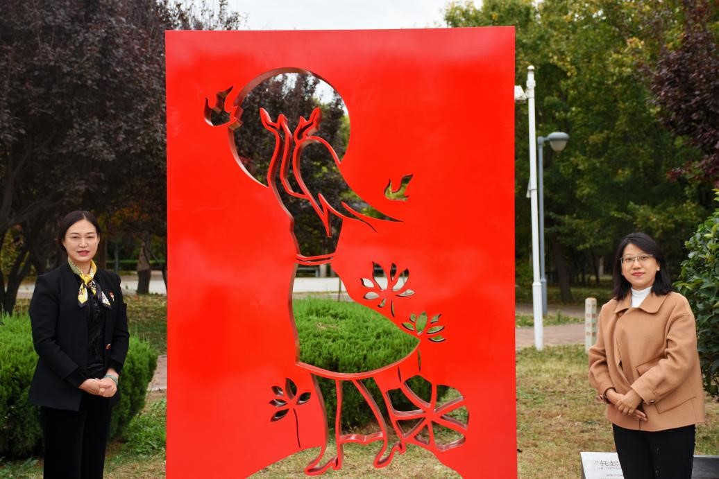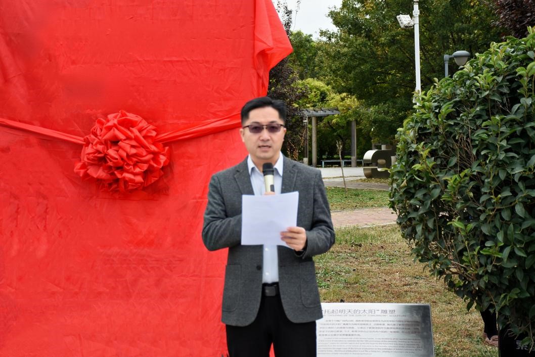 于子云、崔江宁共同为“托起明天的太阳”雕像落成揭幕。“双手托起一轮红日”雕塑寓意“为明日之责任育英才,为祖国的明天燃希望”。既代表了教育学院学子对学校立德树人的感激与感恩,又表达了教育学院作为教师培养的承担者,对莘莘学子的殷切希望。教育学院也如冉冉升起的一轮朝阳,为山东省基础教育事业的发展贡献自己的力量。