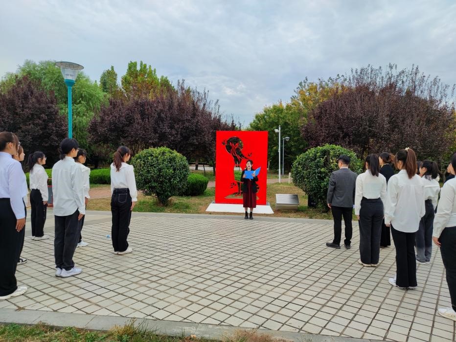 仪式最后,学生代表带来朗诵《不负今日时光,托起明天的太阳》,在“坤德含弘,至善尚美;菁菁教院,桃李满园;请党放心,强国有我”的铮铮誓言中,倾诉着对学校的热爱与感谢,抒发了新时代青年坚定不移跟党走的信念。