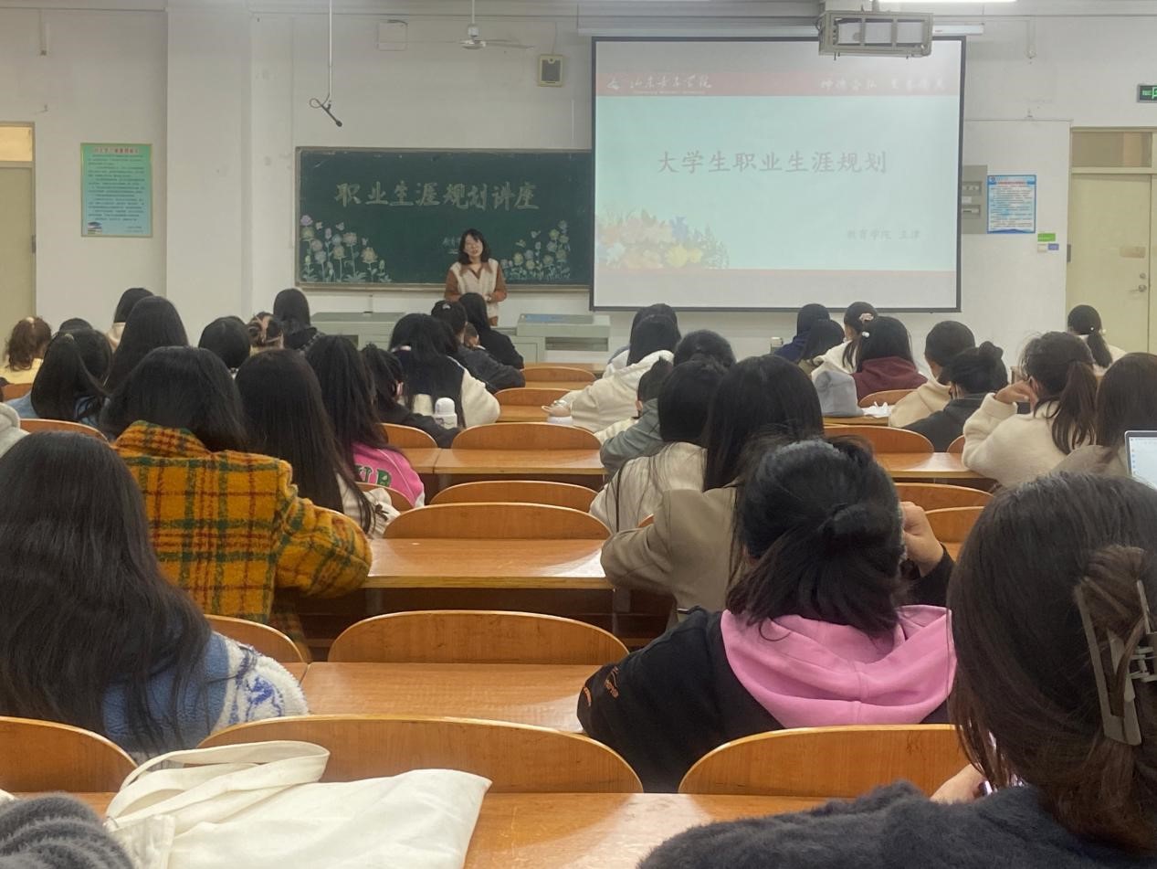 为增强大一学生的职业生涯规划意识,确立职业发展目标,11月17日下午,教育学院举行职业生涯规划讲座。本次讲座由王津老师主讲,教育学院部分大一学生参加此次讲座。
