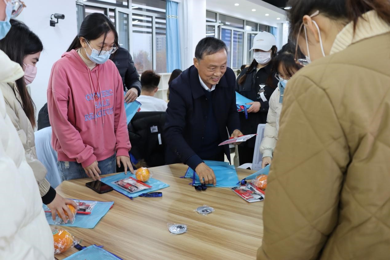 考研之路,学院与大家同舟共济。与会领导老师们为考研学子们送上了“暖心大礼包”----文具袋、尺子、涂卡笔和橙子等考研暖心礼品,寓意考研学子们心想事成,金榜题名,成功上岸。会后,辅导员和学生干部们到图书馆、教室为没来得及到现场参加活动的考研学子送去了“暖心大礼包”。这些礼物蕴含了学院全体领导和老师对同学们美好的期待与温馨的鼓励。考研学子们纷纷表示,一定会以最好的状态迎接考试,以优异的成绩回报学院。