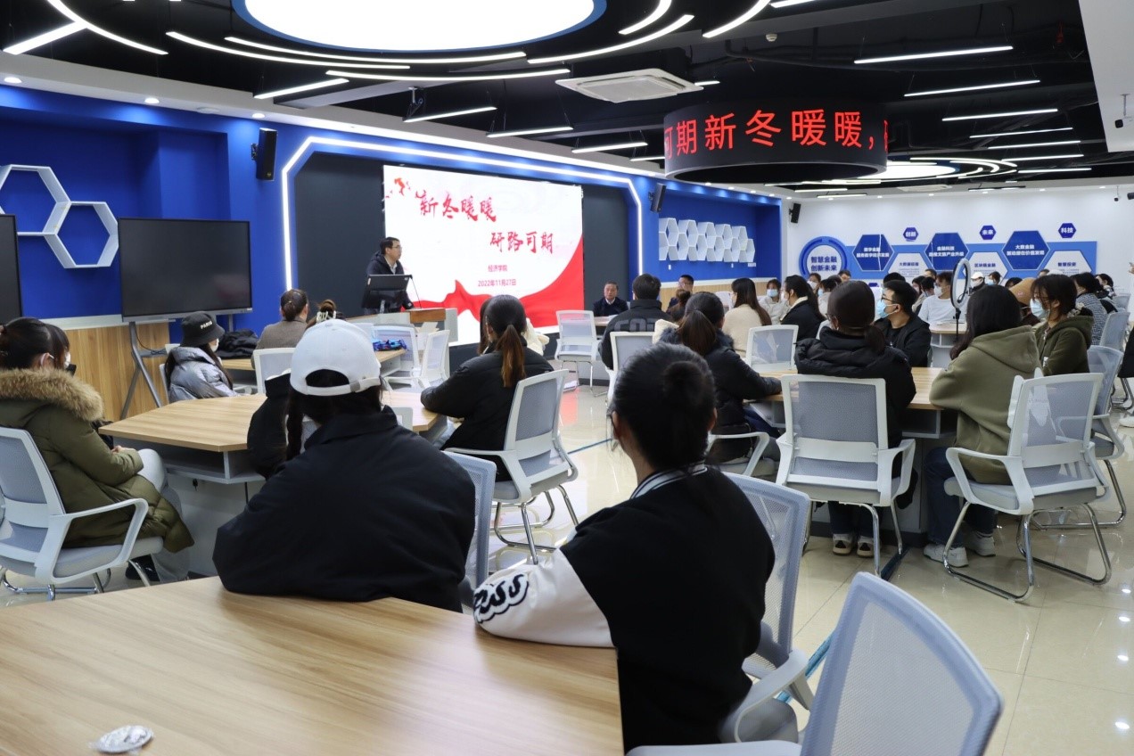 为增强考研学子的备考信心,调整备考状态,缓解考研压力,让学生以更加积极平和的心态迎接考试,11月27日下午,经济学院在求真楼511举办了“新冬暖暖 研路可期”考研送温暖活动。学校招生就业处处长吕慎敏、经济学院院长沈传河、党总支副书记赵晓琳、副院长崔俊富、辅导员代表以及学院2023届考研学生代表参加了此次活动。活动由党总支书记齐振花主持。