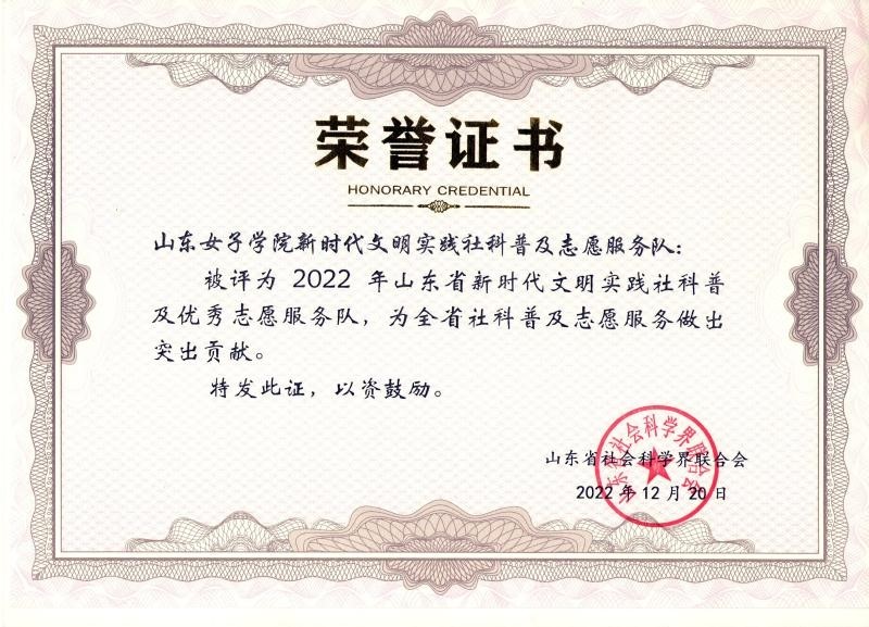 近日,山东省社科联公布了“2022 年度山东省新时代文明实践社科普及优秀志愿服务队”名单,学校新时代文明实践社科普及志愿服务队继2021年后再度入选优秀志愿服务队。