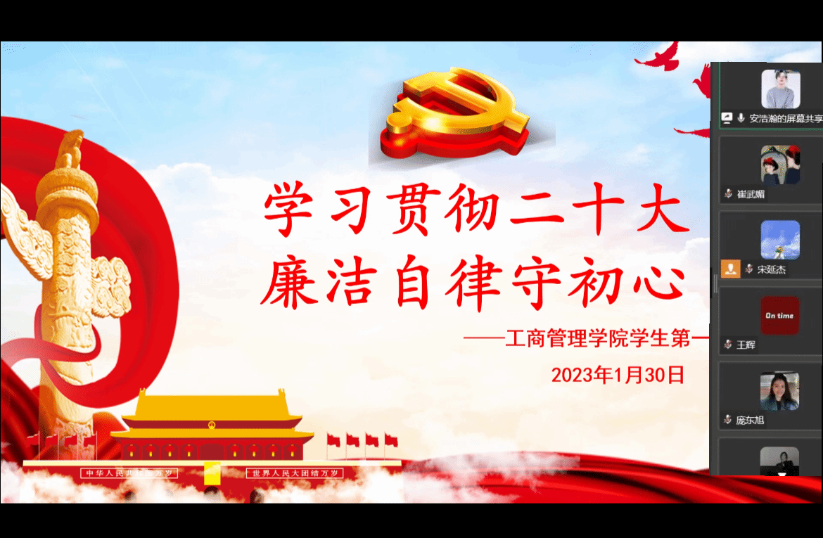 为深入学习宣传贯彻党的二十大精神,进一步推进党风廉政建设常态化、长效化,寒假期间,工商管理学院开展了“学习贯彻二十大·廉洁自律守初心”主题党日。