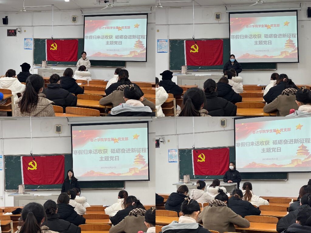 为深入学习贯彻党的二十大精神,引导党员牢记初心使命,凝心聚力、奋发进取,2月21日,会计学院学生党支部在博学楼310开展新学期全体党员大会暨“寒假归来话收获 砥砺奋进新征程”主题党日活动。