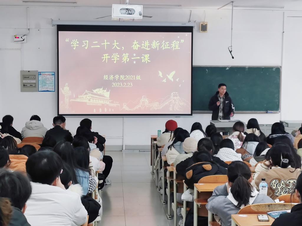 为深入贯彻落实党的二十大精神,进一步深化学生思想政治教育,2月23日,经济学院各年级辅导员老师们分别组织开展以“学习二十大,奋进新征程”为主题的2023年春季学期“开学第一课”主题教育活动,活动采用线上线下相结合的方式进行,引导学生以积极的心态和朝气蓬勃的精神面貌投入到新学期的学习生活。