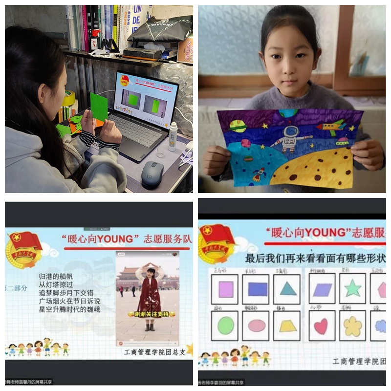 云端相伴共成长,携手奋进新征程。暖心向YOUNG志愿服务队携手济南市罗尔小学开展线上支教活动,本次支教共有两个模块:一是组织集阅读和运动于一体的日常打卡活动,志愿者与小学生结成“一对一”辅导小队,爱心相伴共成长;二是开展“社团小课堂”,以绘画社团、手势舞社团、中英绘本故事社团、手工社团为载体,学院67位志愿者用灵动教学培养同学们兴趣,用暖心课堂助力同学们成长。