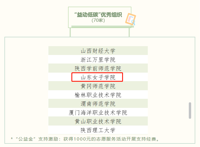 近日,由共青团中央发起的全国志愿汇第六届最热公益校园“益动低碳”主题活动评选结果发布,学校青年志愿者协会积极参与,荣获“益动低碳”优秀组织称号、进入全国“高校热榜Top100”并获奖金1000元。