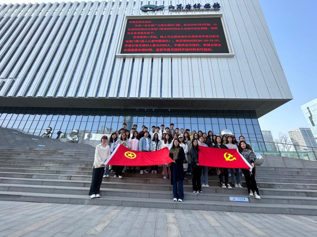 3月9日,学生党支部党员以及团员、积极分子代表前往山东省科技馆新馆参观学习。同学们在场馆中沉浸式体验科技的魅力。C919飞机是我国自主研制、具有自主知识产权的大型喷气式民用飞机,在航空航天科普区,不仅可以了解到C919飞机的相关知识,还可以亲自上阵体验模拟驾驶飞机的乐趣,深刻感受中国一代代航空航天人智慧的结晶。VR模拟月球漫步、神州返回舱体验,在寓教于乐的体验方式让同学们体会到我国航天航空科技从跟跑迈向领跑的历史性跨越与突破。4D电影《与恐龙同行》利用声光电配合给同学们呈现出一场视听盛宴。一个个新奇的体验,一幕幕知识的讲解,同学们在科技知识的海洋中尽情翱翔,汲取科技知识带来的心灵滋养。