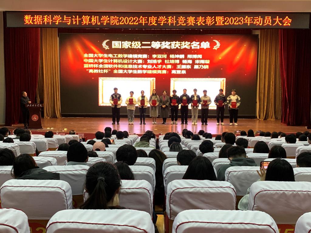 3月23日,数据科学与计算机学院在图书馆二楼报告厅举办2022年度学科竞赛表彰暨2023年动员大会。校长李光红出席,学生工作部(处)、团委、教务处、合作发展处负责人、数科学院领导班子以及部分师生代表参加了大会。数科学院院长孙洪峰主持会议。