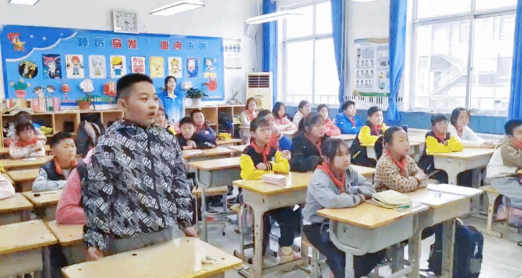 志愿者老师带领同学们朗诵诗歌《雷锋叔叔,你在哪里》,同学们用真挚的感情和饱满的热情表达了对雷锋同志的敬意。“哪里需要献出爱心,雷锋叔叔就出现在哪里”,雷锋同志乐于助人,公而忘私的奉献精神引领同学们努力成长为敢担当的新时代少先队员。