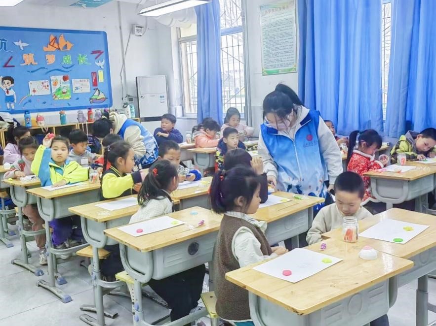 志愿者讲解了“雷锋”名字的含义——攀登高峰。他从学徒做起,艰苦奋斗,一步步成长为模范工人,值得每个人学习。随后,在志愿者的协同帮助下,一双双巧手赋予了彩泥鲜活的生命力,一朵朵“太阳花”向阳而生,一颗颗“小星星”闪耀光芒。同学们在制作过程中有感而发:“我愿这朵朵鲜花,敬献永远的雷锋叔叔”。雷锋同志躬身实践、岗位建功的精神引领同学们努力成长为能吃苦、肯奋斗的新时代少先队员。