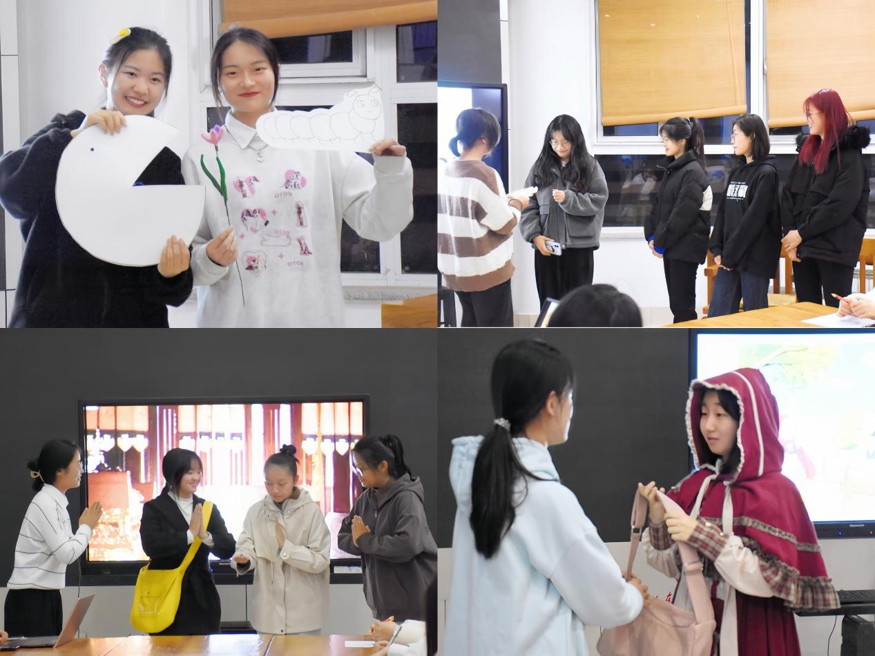 活动主要分为绘本演绎和绘本领读两部分。同学们或动作惟妙惟肖,生动有趣地讲述情节;或表情丰富多姿,声情并茂地演绎人物;或歌声美妙动听,娓娓动听地讲述故事;或道具美轮美奂,生动形象地表达情节,陆续演绎及领读了《太阳虫》《失落的一角》《猜猜我有多爱你》《勇气》等经典绘本,将故事情节、角色个性渲染的淋漓尽致,并在研讨阶段剖析了各绘本深层次的含义。
