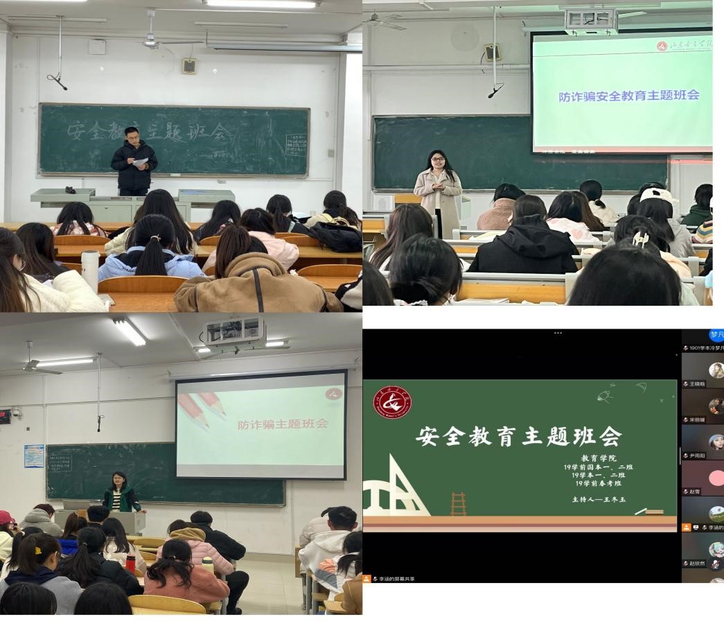 为进一步加强学院安全教育,提高学生安全防范意识,增强自我保护能力,近日,教育学院面向所有在校生班级组织开展“防范电信诈骗 共筑校园安全”安全教育主题班会。