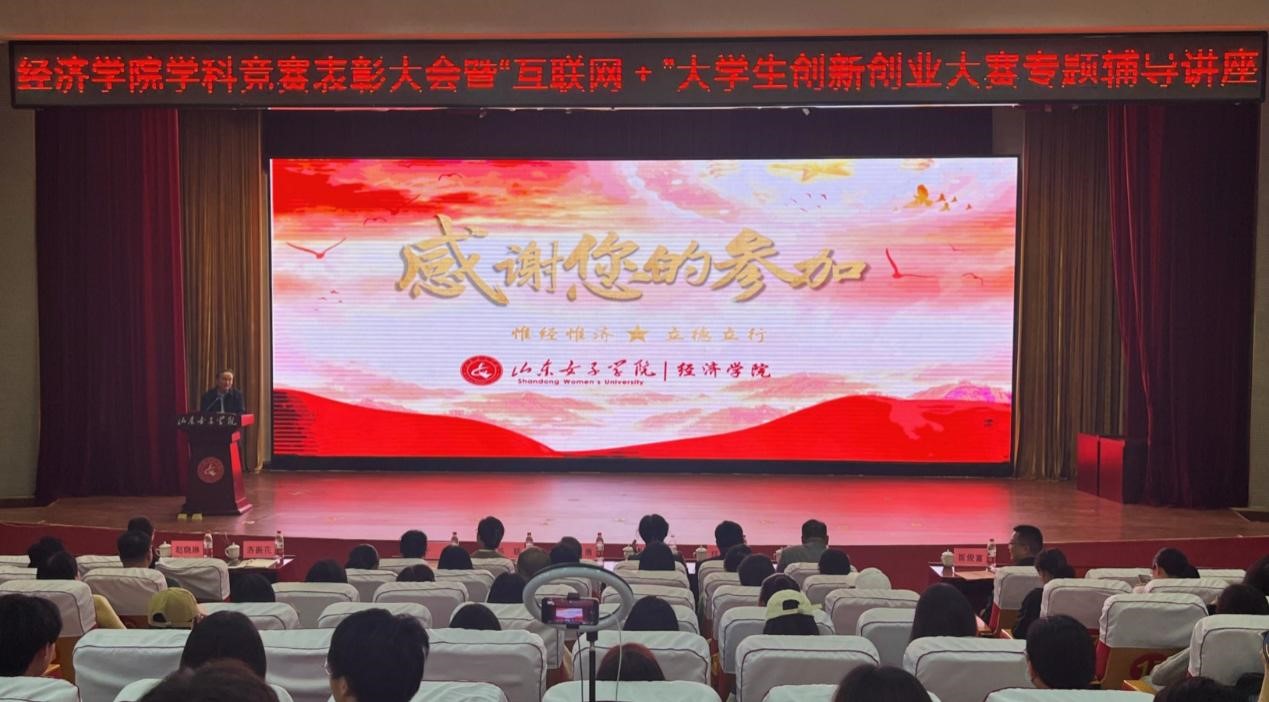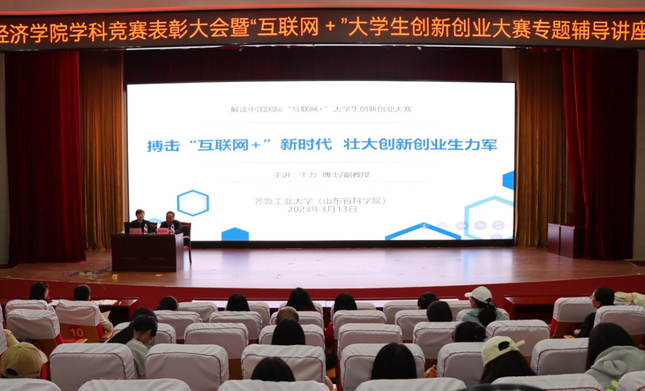 4月13日,经济学院在图书馆二楼报告厅举办2022年度学科竞赛表彰大会暨“互联网+”大学生创新创业大赛专题辅导讲座。党委副书记、校长李光红出席表彰大会,教务处处长穆勇、学生工作部(处)处长任晓剑、团委书记苏婧、创新创业学院党总支书记、院长李厚忠、经济学院领导班子成员及部分师生代表参加大会。本次活动还邀请了齐鲁工业大学管理学院副教授于力作“互联网+”专题辅导讲座。会议由经济学院院长沈传河主持。