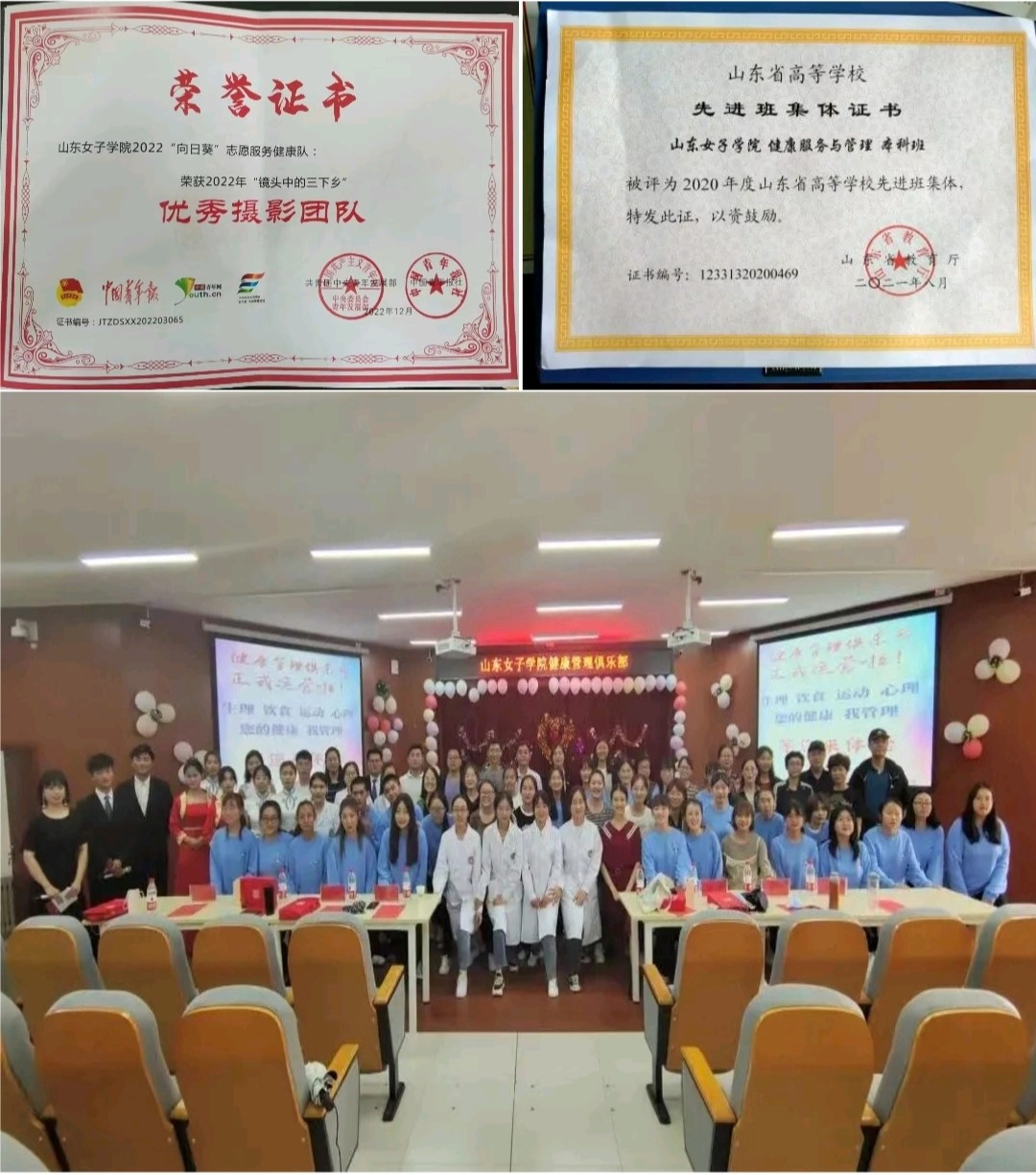 社会与法学院健康服务与管理专业2019级本科班团支部现有团员47人,团支部结合专业优势,积极参加志愿服务,班级年度志愿服务时长共达2000余小时。团支部成员先后参加“互联网智慧养老大赛”、暑期“三下乡”社会实践等专项社会实践活动22项,获评全国大中专学生暑期“三下乡”社会实践最佳团队;团支部组建“健康管理俱乐部”,动员团支部成员参与山东省“希望小屋”、山东省疫情防控等志愿服务活动62次,相关事迹多次被cctv、山东教育新闻网等12家媒体宣传报道,荣获2020年度“山东省高等学校先进班集体”、学校“优秀团支部”“先进团支部”“优良学风班”等荣誉称号。健康服务与管理专业2019级本科班共50人,截止目前,考研录取人数20人,录取率40%,取得了优异的考研成绩。