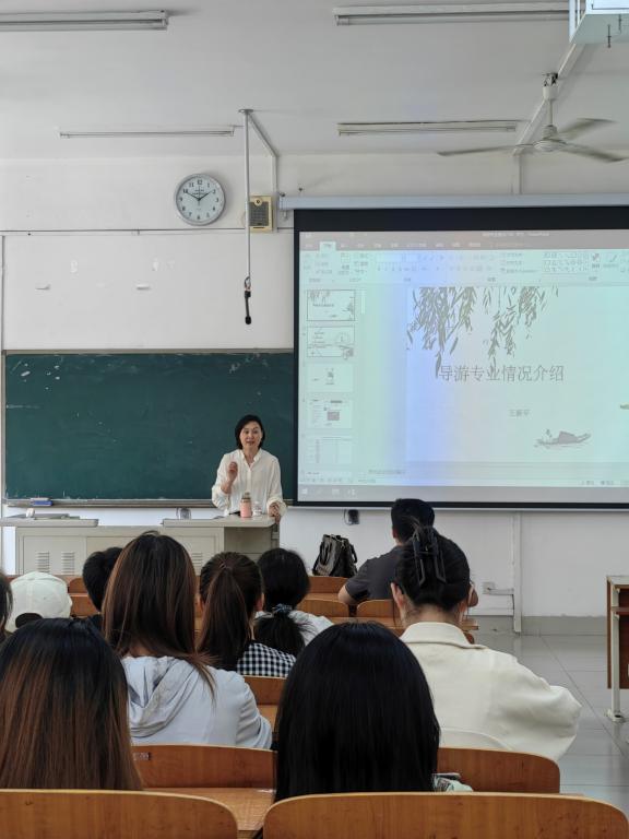 在学生专场报告会中,王新平教授围绕旅游管理类专业学生核心技能提升、旅游类行业人才市场需求、导游证备考等问题,对旅游管理专业学生进行了详细讲授。王新平教授通过比较旅游类专业高职学生、本科学生、研究生等不同层次学生未来高质量就业的各自优劣势,以及旅游市场对不同层次学生需求的差异化分析,点明了旅游管理专业学生在应用型能力提升方面的核心关键点,鼓励我院学生把握优势、弥补不足,着眼行业需求,尽快考取行业高含金量证书,提高未来就业核心竞争力。