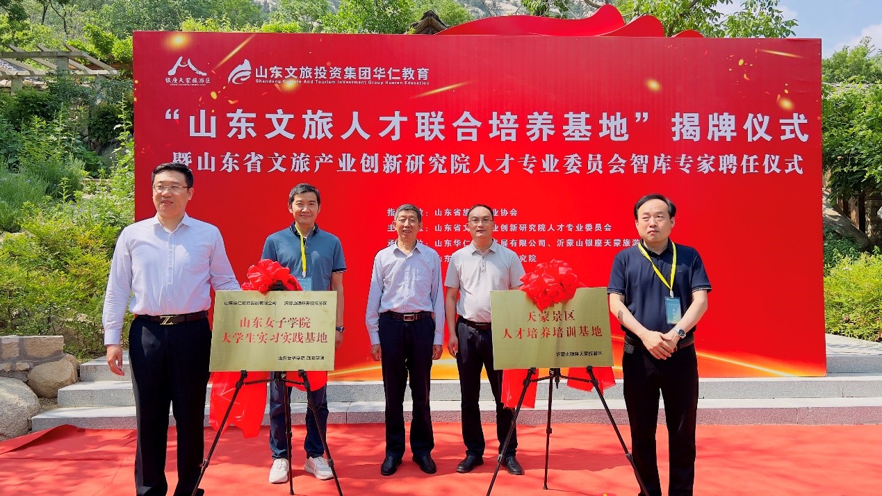 为加快文旅产教资源融合,促进产教资源共享,实现校企共同高质量发展,5月17日,山东文旅人才联合培养基地揭牌仪式暨山东省文旅产业创新研究院人才专业委员会智库专家聘任仪式在沂蒙山银座天蒙旅游区举办。旅游学院副院长鲁春晓、院长助理王晓伟应邀参加本次活动。