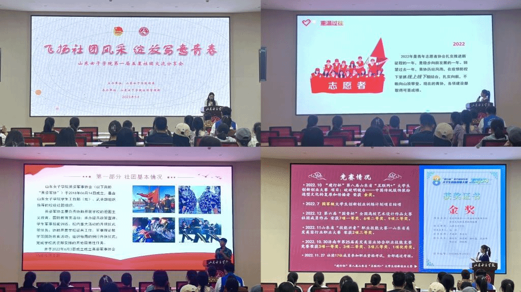 经验分享交流会上,明镜台汉服社、读者协会、英姿军事协会、春雨合唱团、青年志愿者协会5个五星社团负责人分别从社团管理、特色活动、竞赛情况、团支部建设、2023年度计划等方面,通过ppt展示的形式,分享了社团建设经验和特色做法。各社团坚持弘扬中华优秀传统文化,勇于创新,全面激发社团活力,开展行走的美育课堂传统弓道课后延时课、中国女性服饰变迁缩影秀、坤弘读书会经典共读、健身气功八段锦带学带练、强国有我“核”你一起志愿宣讲等内容丰富、形式多样的社团活动,展现了女院青年学生的青春风采。随后,进入交流环节,同学们围绕社团发展中的阻碍与难点问题、参与竞赛赛事选择、社团特色与学科专业结合、日常活动开展等问题进行交流,相互借鉴优秀的经验做法,积极讨论社团的发展与未来。