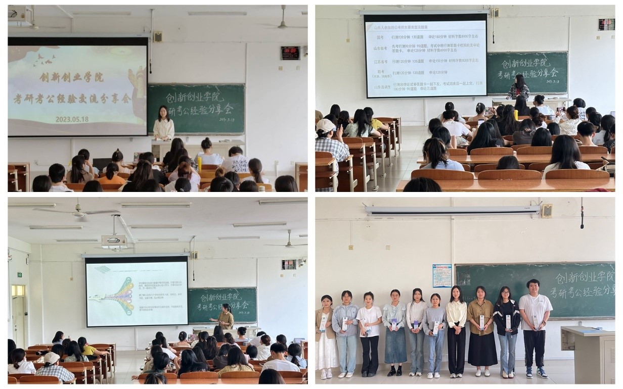 为营造优良学风,助力广大学子明确考研考公的目标、树立考研考公的信心,科学制定学习计划和复习策略,5月18日,创新创业学院举办考研考公经验交流分享会。学院共邀请了成功考取吉林大学、东北大学、中国海洋大学等高校的12位同学以及公考上岸的4名学生担任主讲嘉宾。会议采用线上线下相结合的方式举办,2020级、2021级学生代表到场参会。